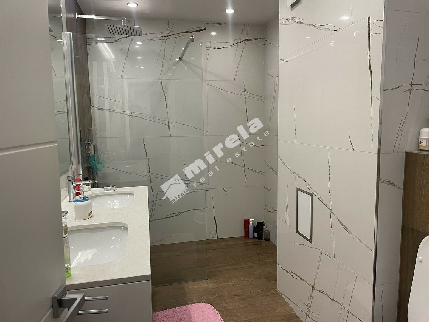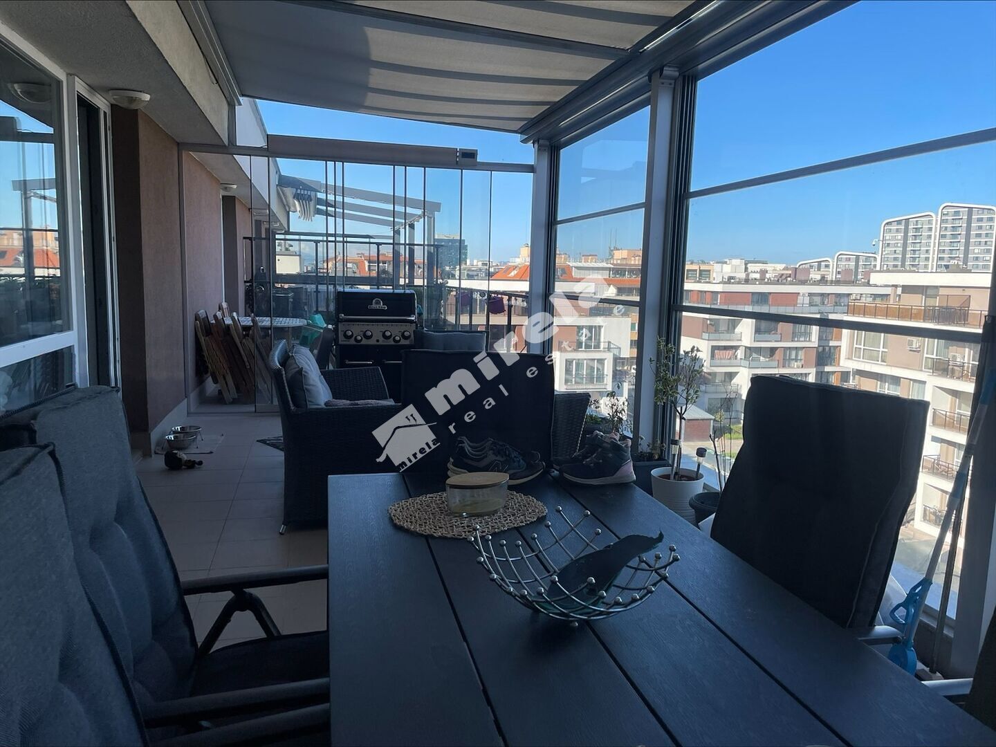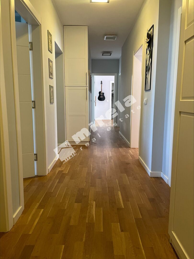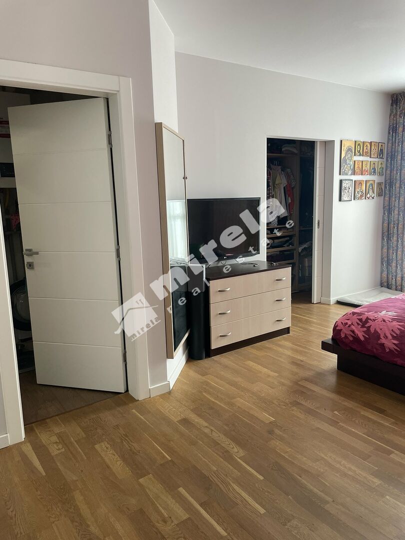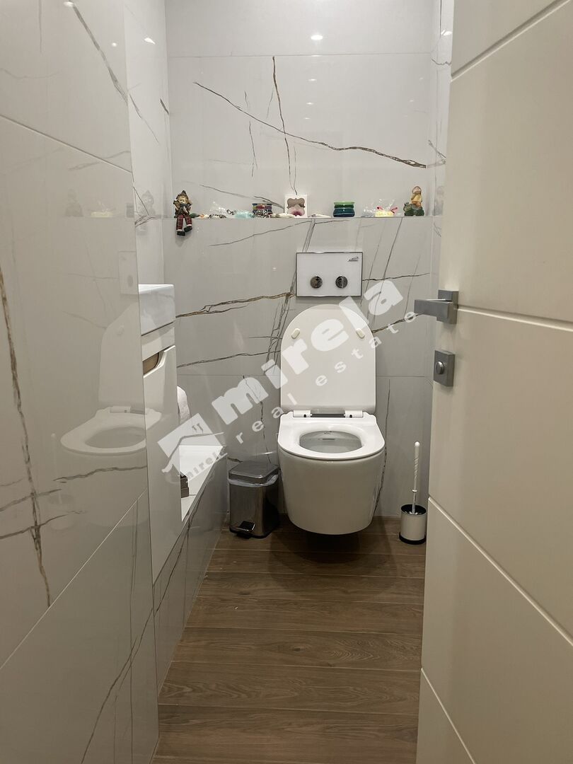 Разпределение: антре, просторна дневна стая с кухня и трапезария, 4 спални, две бани с тоалетни, отделна тоалетна, голяма тераса с барбекю и два балкона.