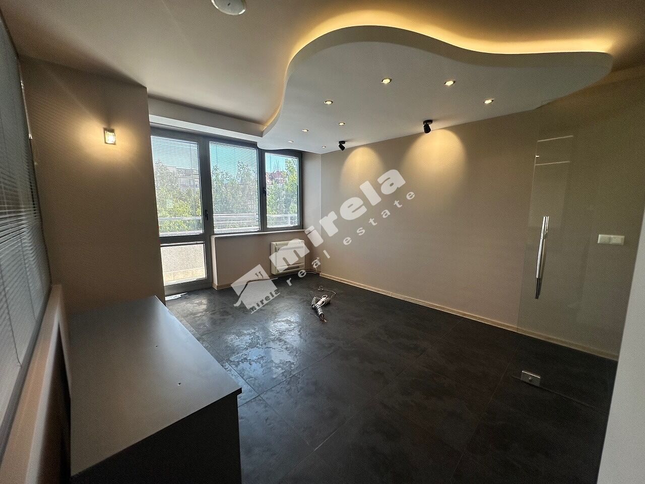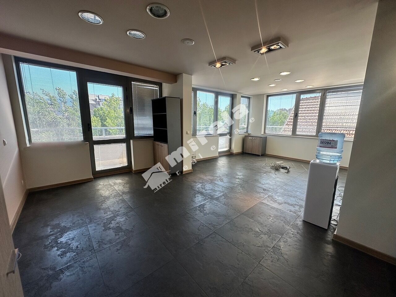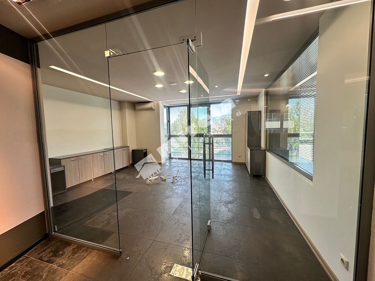 Офисът се състои от шест кабинета с остъклени врати и отваряеми прозорци, голямо отворено офис пространство, оборудван кухненски бокс, две санитарни помещения с тоалетни, склад, балкони.