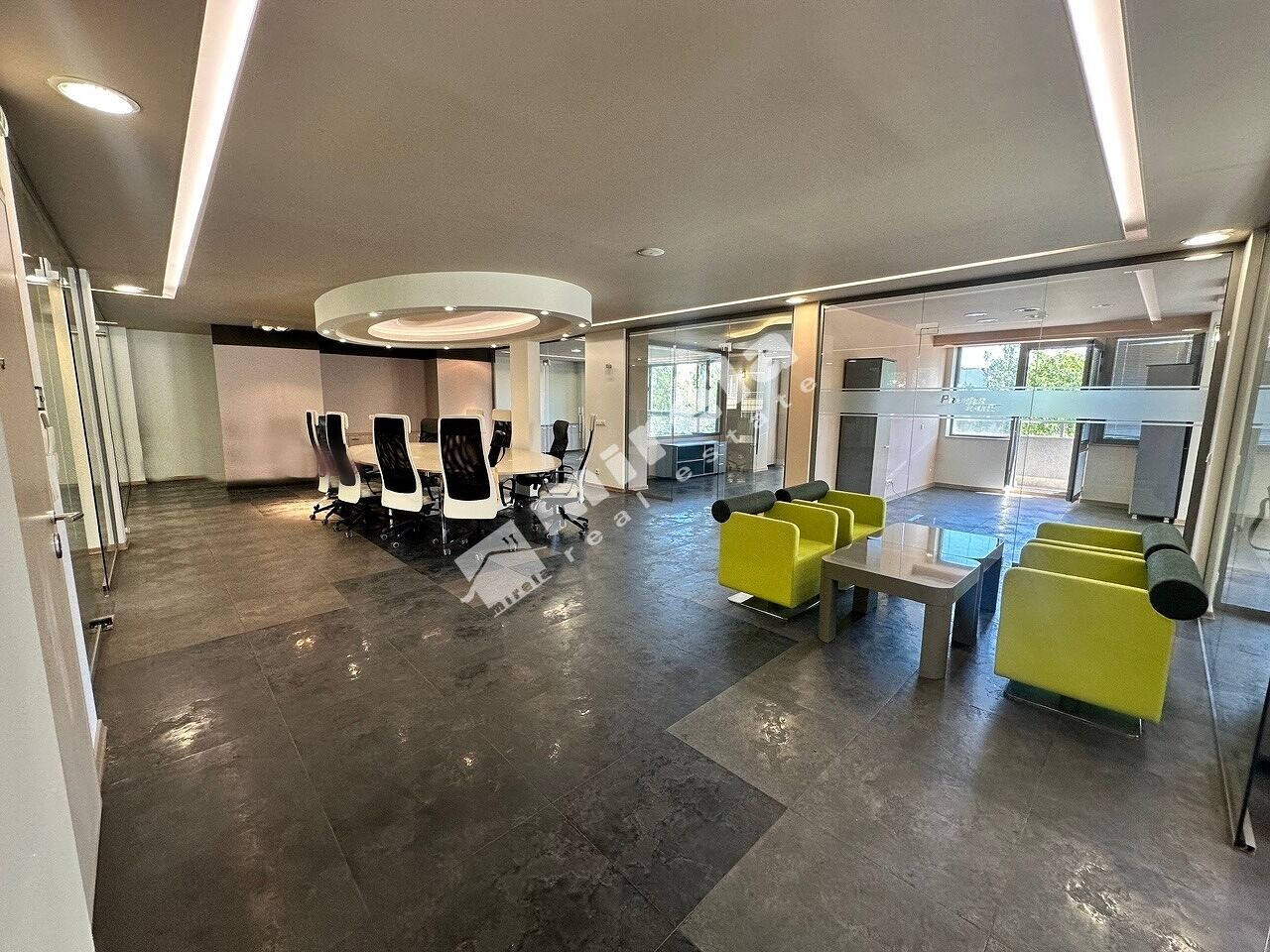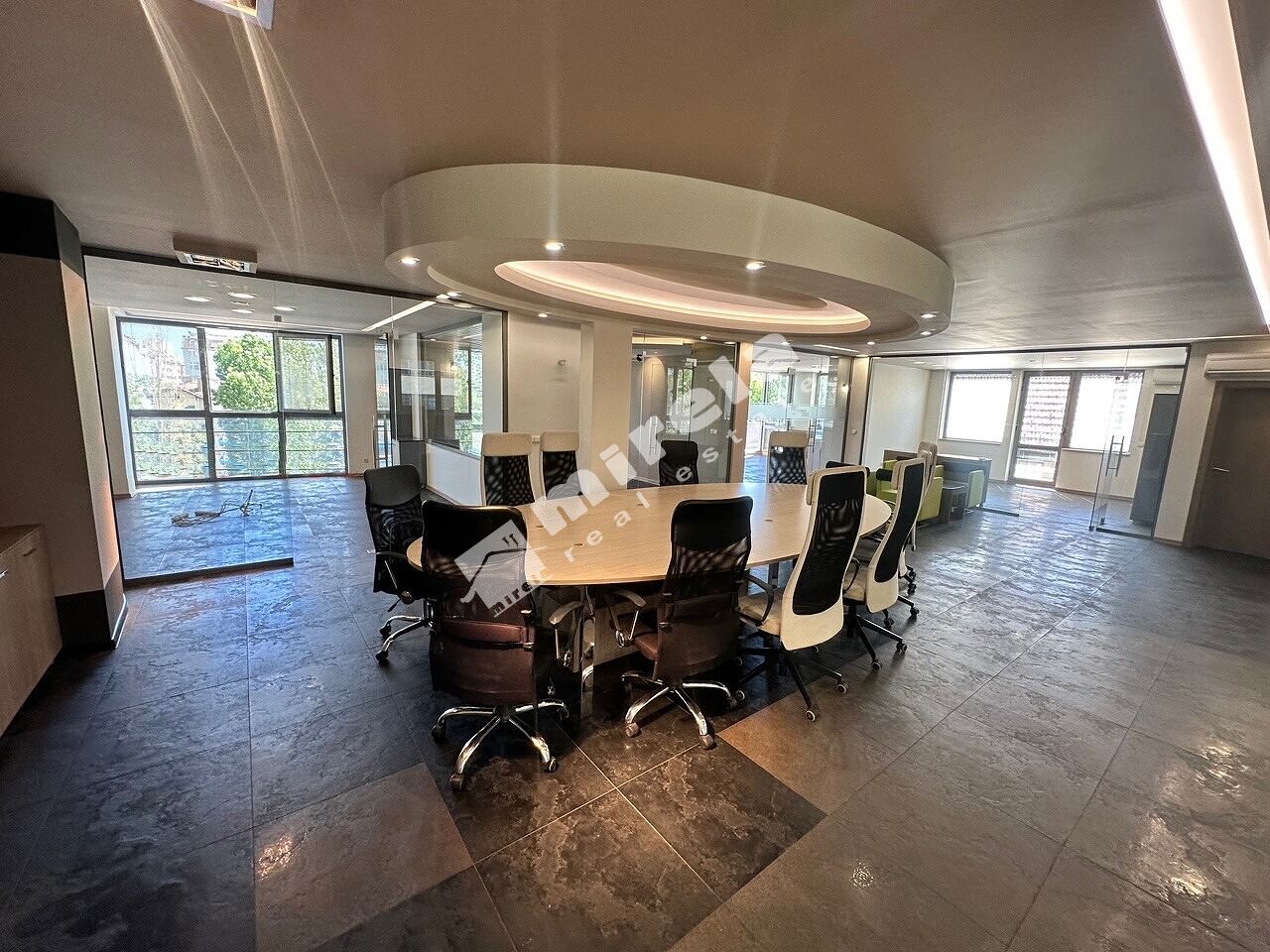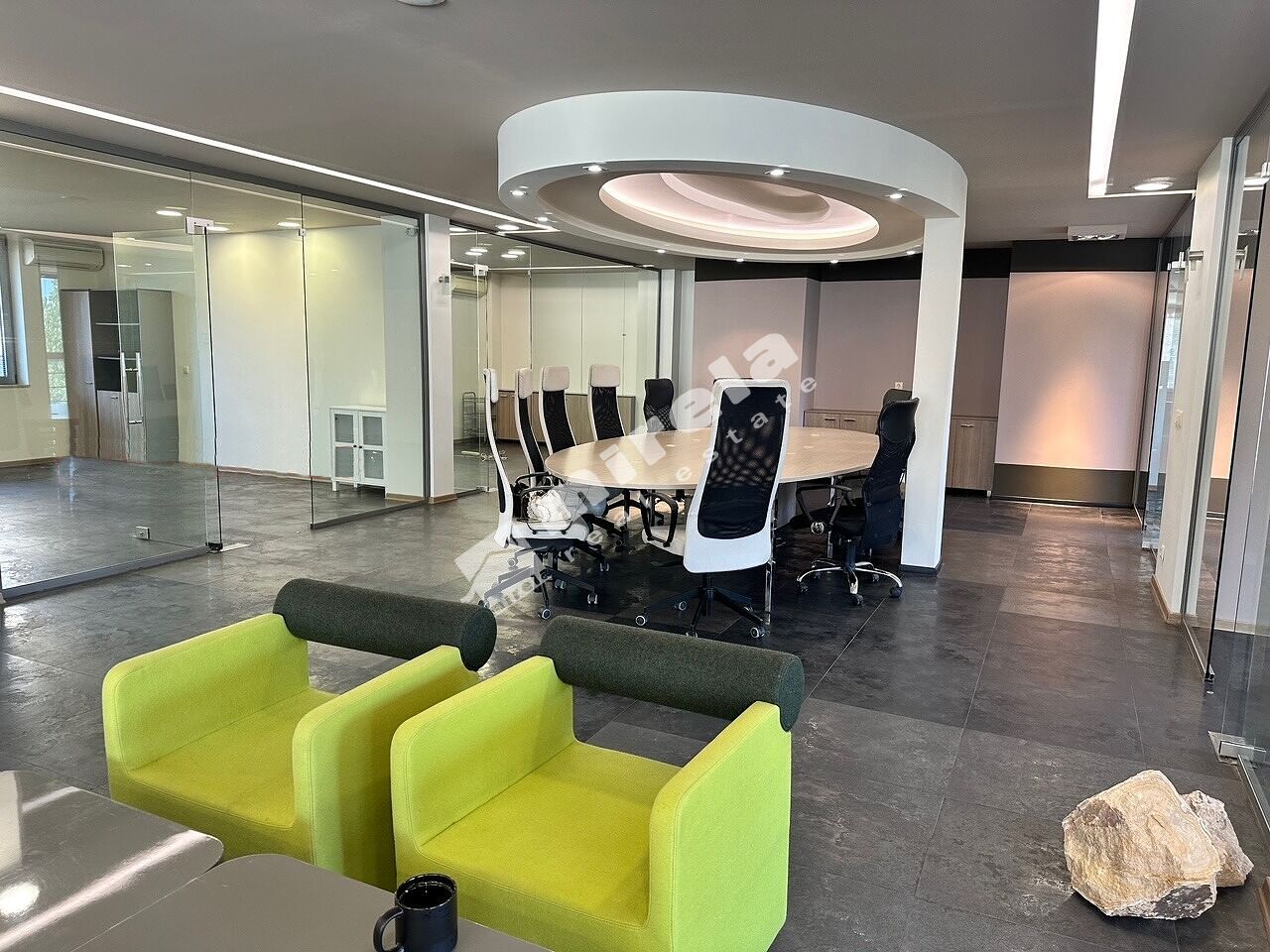 Офисът се състои от шест кабинета с остъклени врати и отваряеми прозорци, голямо отворено офис пространство, оборудван кухненски бокс, две санитарни помещения с тоалетни, склад, балкони.