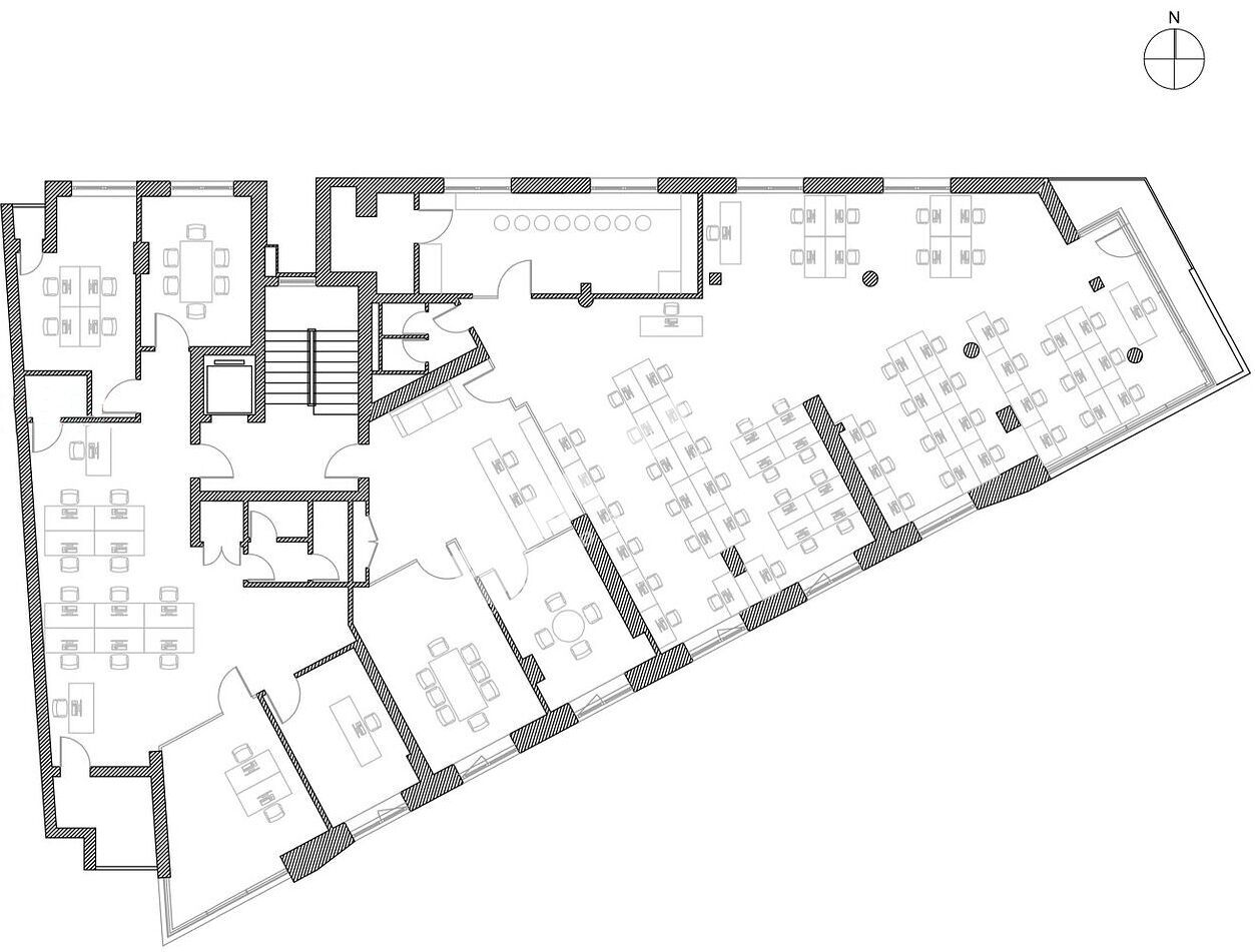 Офисът се предлага в завършен вид, с довършителни работи. Има двоен под, рецепция и множество помещения, преградени с гипсокартон и стъклени прегради с висок клас шумоизолация.