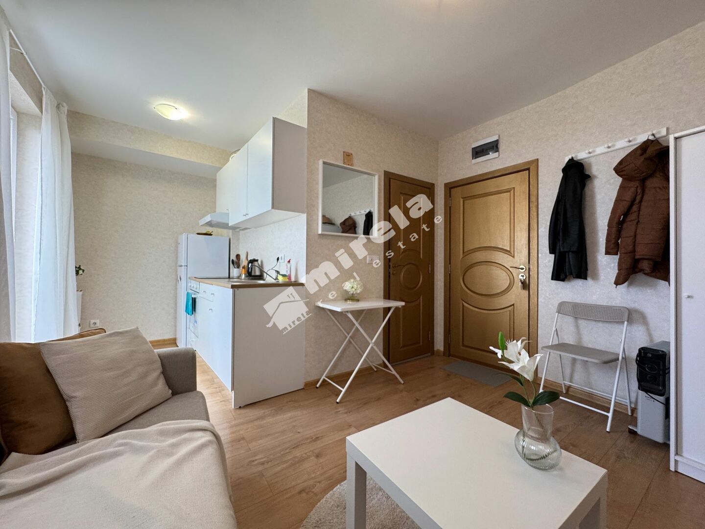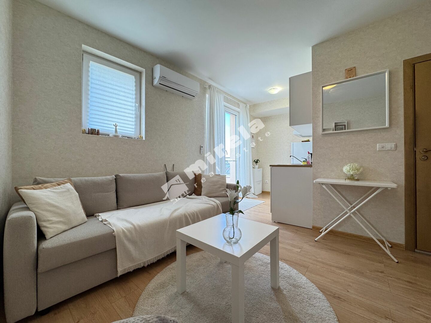 Студиото се състои се от всекидневна с обособена кухненска част, баня с душ кабина и тоалетна, и тераса. Имотът е напълно обзаведен и готов за нанасяне. Подходящ е както за Вашата лична, лятна почивка, така и за отдаване под наем.