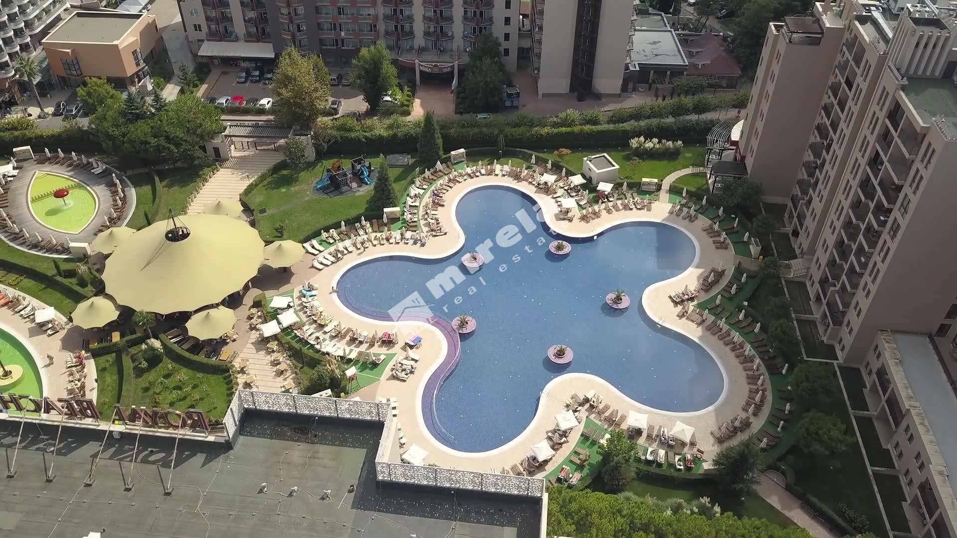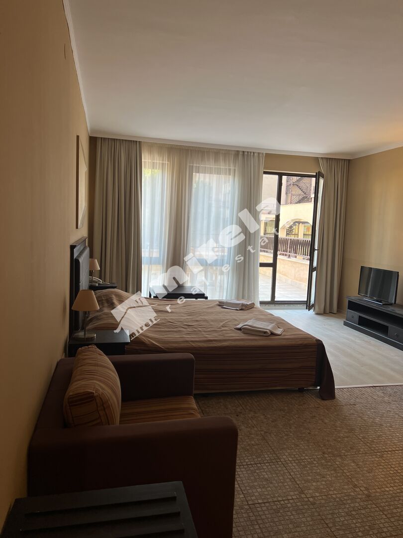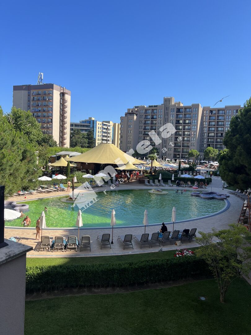 Продава се просторно студио гледка към един от басейните, разположено е на 1-ви етаж в петзвездния комплекс Barcelo Royal Beach, който се намира в сърцето на к.к.Слънчев бряг, само на метри от морския бряг.