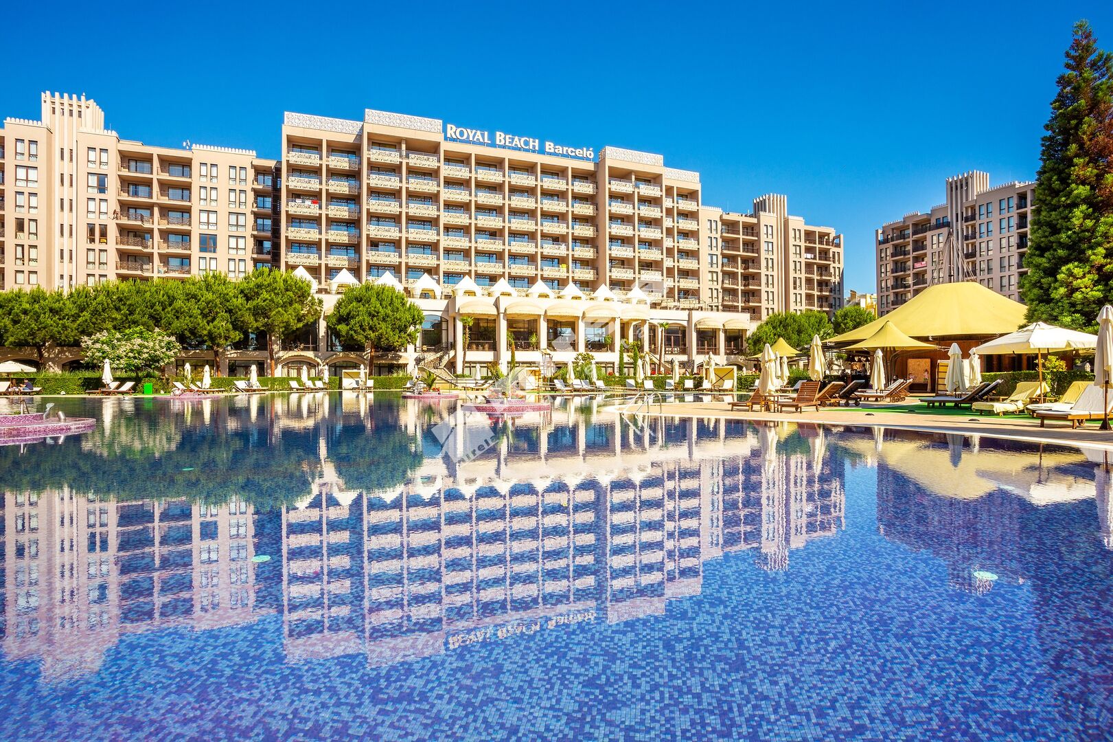 Комплекс Barcelo Royal Beach предлага първокласни удобства: 3 открити басейна и закрит басейн, СПА и уелнес център (джакузи, сауна, парна баня, масажи), фитнес, 3 ресторанта, 3 бара, търговски център, концертна зала , детски клуб, денонощна охрана. Такса обслужване 22 евро на кв. м. на година.