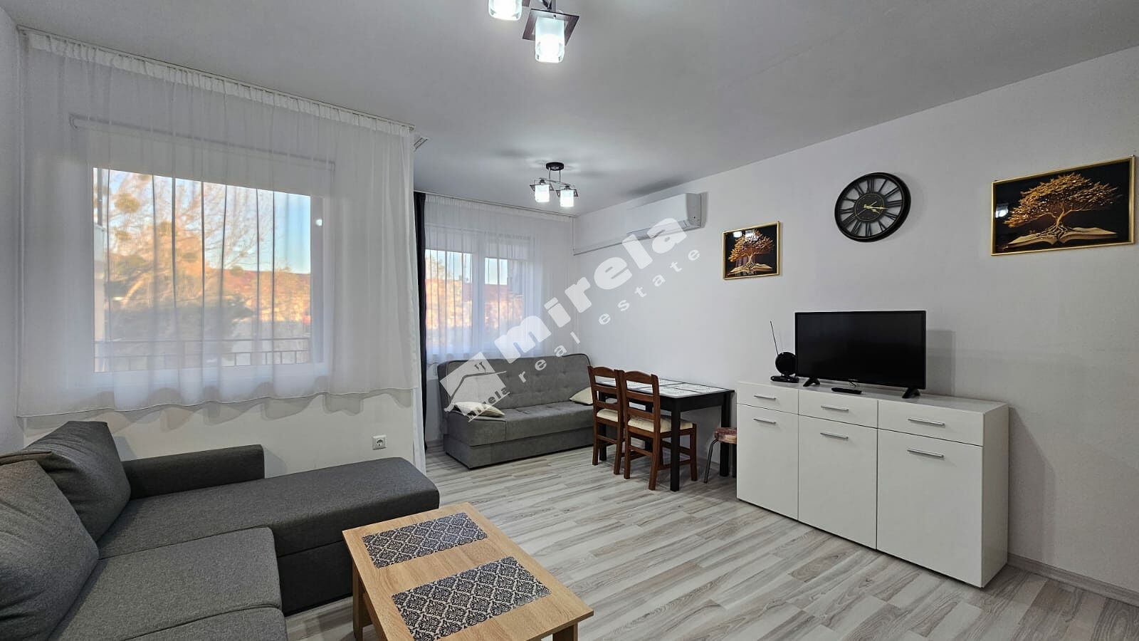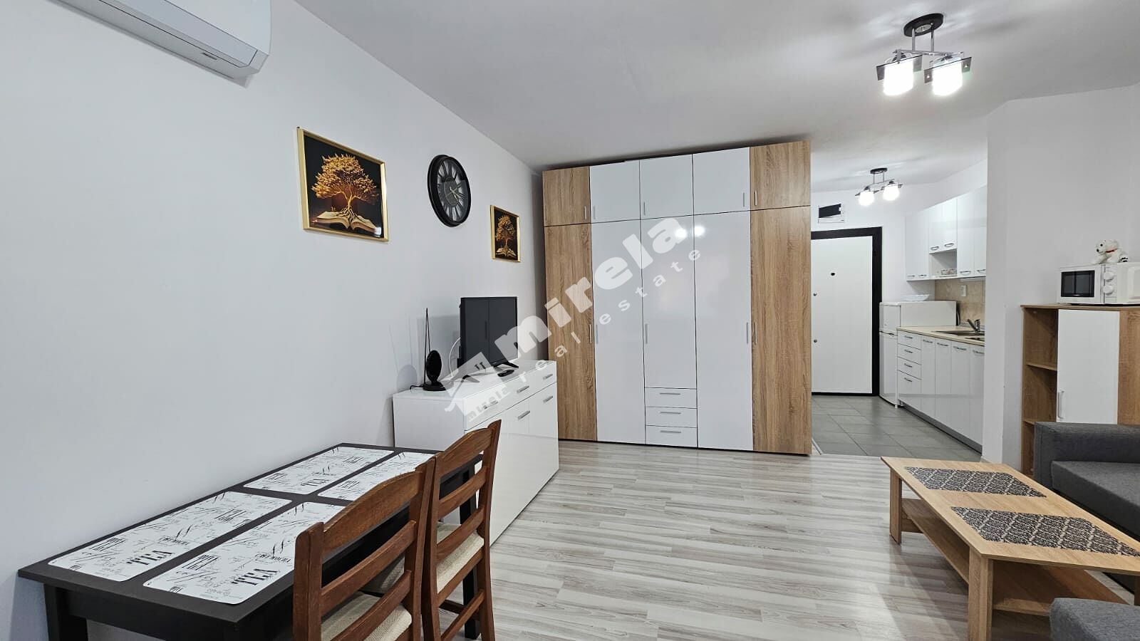Студиото е абсолютно ново, напълно обзаведено и оборудвано с техника, готово за целогодишно живеене, лятна почивка или отдаване под наем. Състои се от: входно антре; просторна дневна с кухненски бокс; баня с душ кабина; и уютна тераса с изглед към парка. Предлага се с наличното обзавеждане и електроуреди. Напълно готов за настаняване или отдаване под наем.