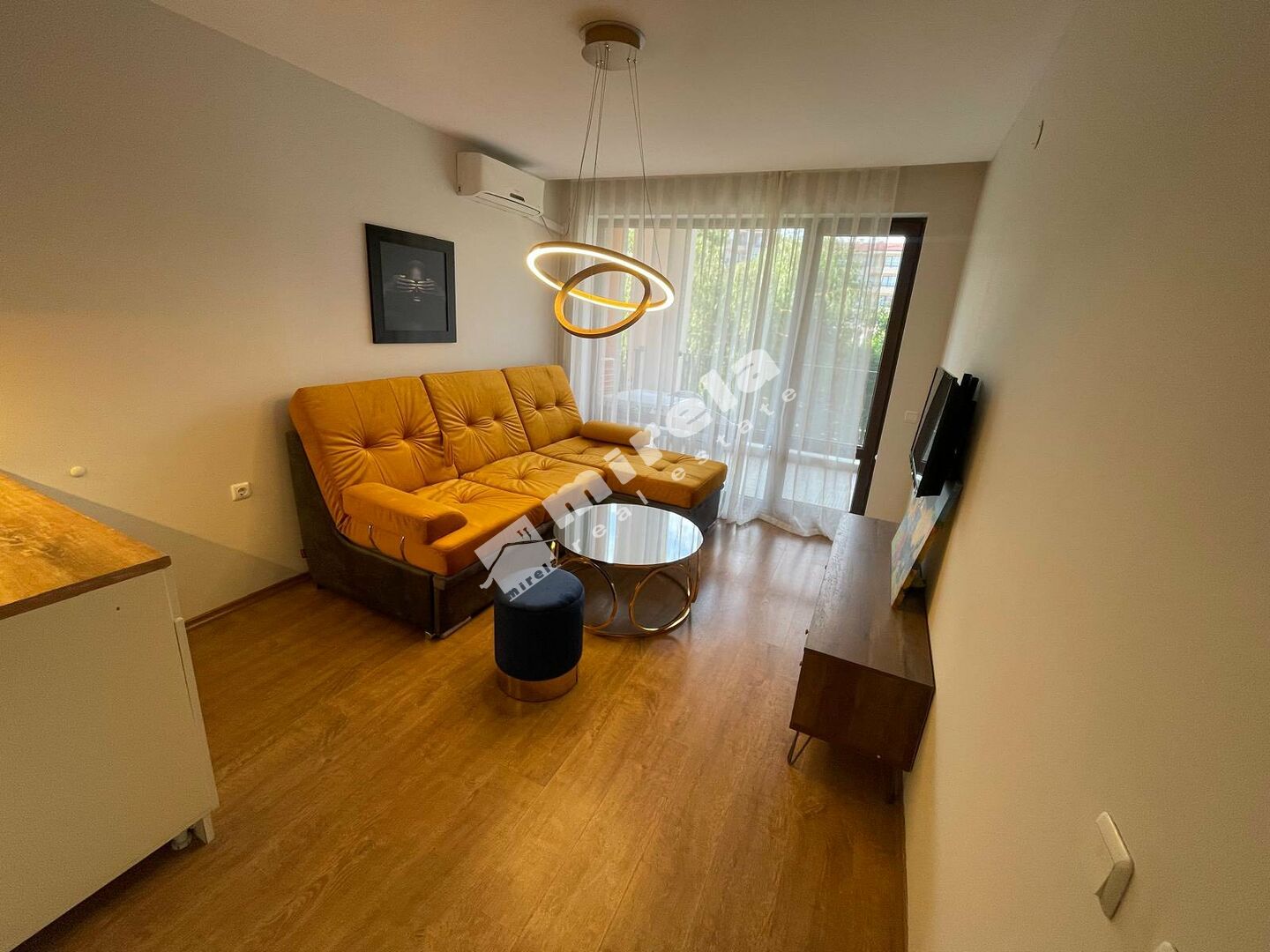 • Просторна всекидневна зона с разтегателен диван и телевизор