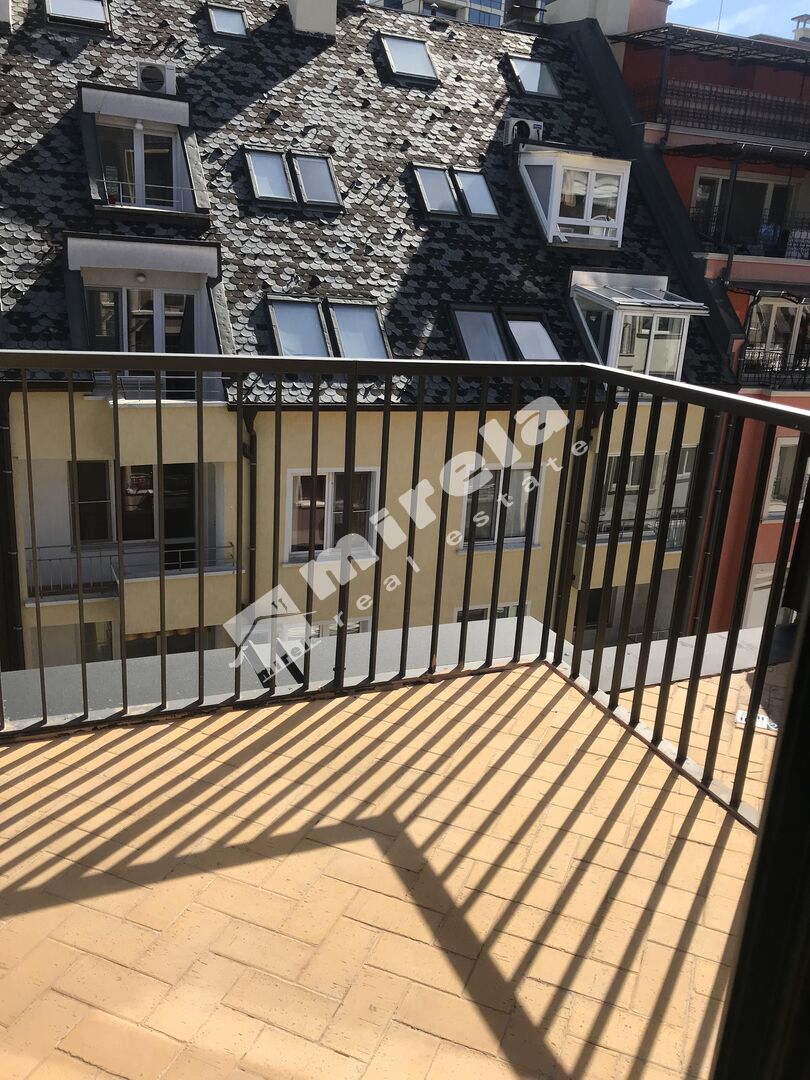 Апартаментът се състои от хол с трапезария и кухненски бокс с балкон, самостоятелна спалня със страхотен балкон с панорамна гледка към Витоша, и баня с тоалетна. Предлага се напълно обзаведен.