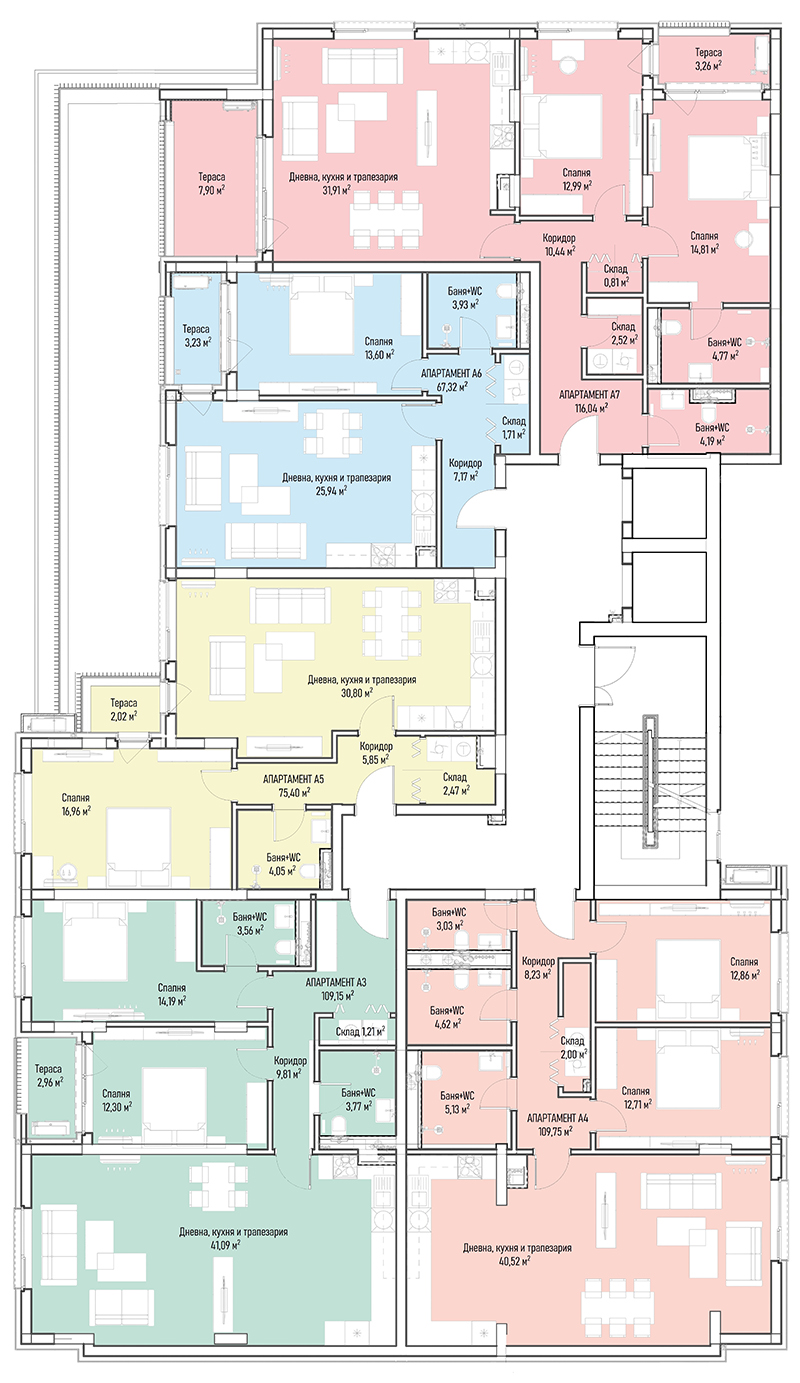 | Apartment А7, 2 BRS APARTMENT, Entrance А, 142.31 m2, (Built-up area 116.04 m2), € 278 505 (€ 1 957/sq.m) | AVAILABLE |