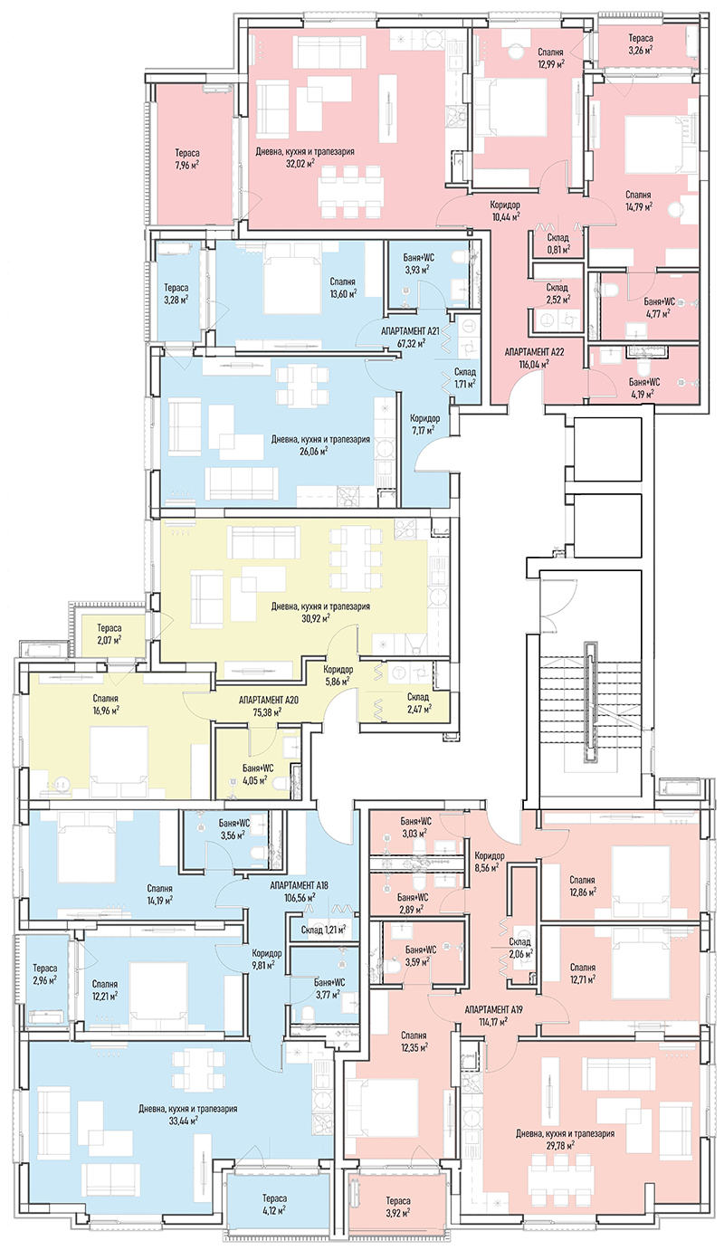 | Apartment А22, 2 BRS APARTMENT, Entrance А, 143.40 m2, (Built-up area 116.04 m2), € 286 366 (€ 1 997/sq.m) | AVAILABLE |