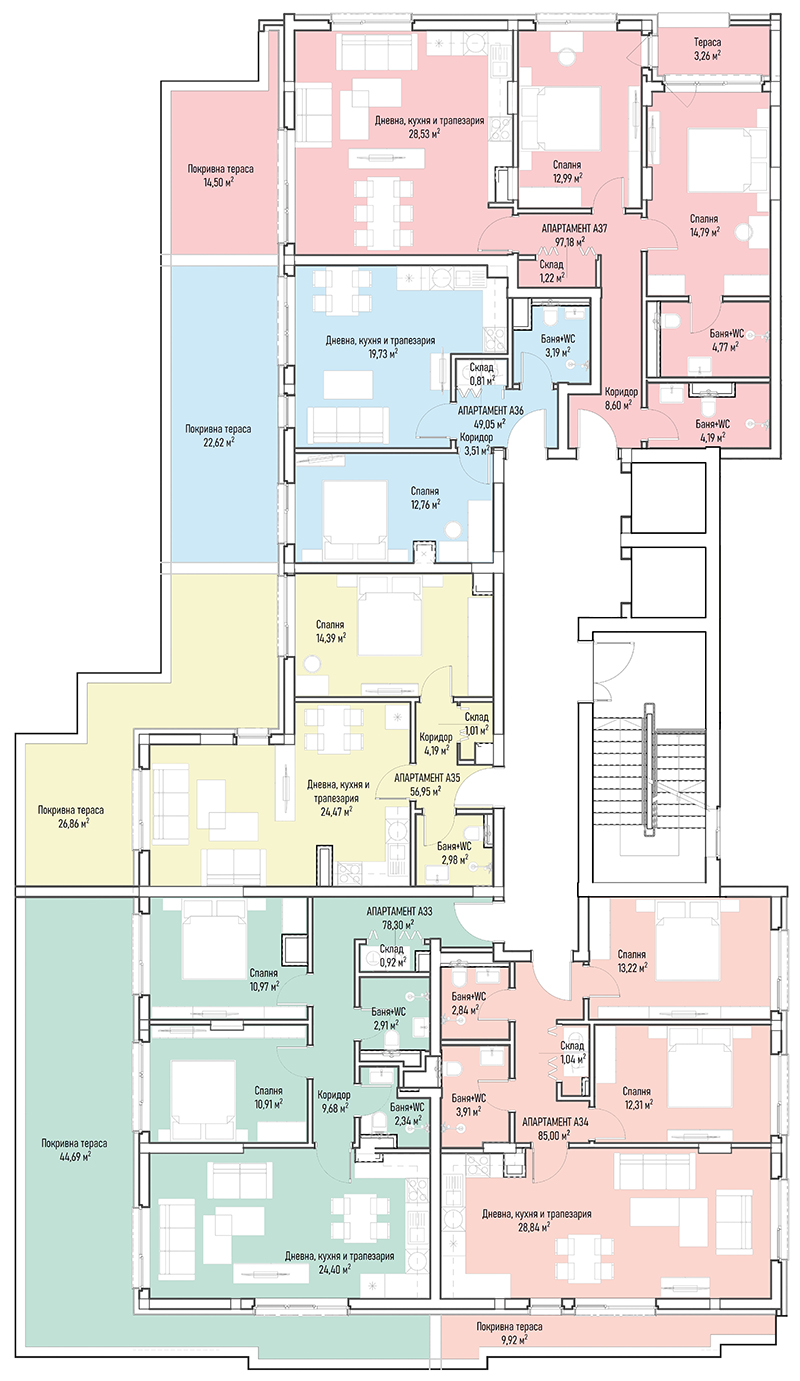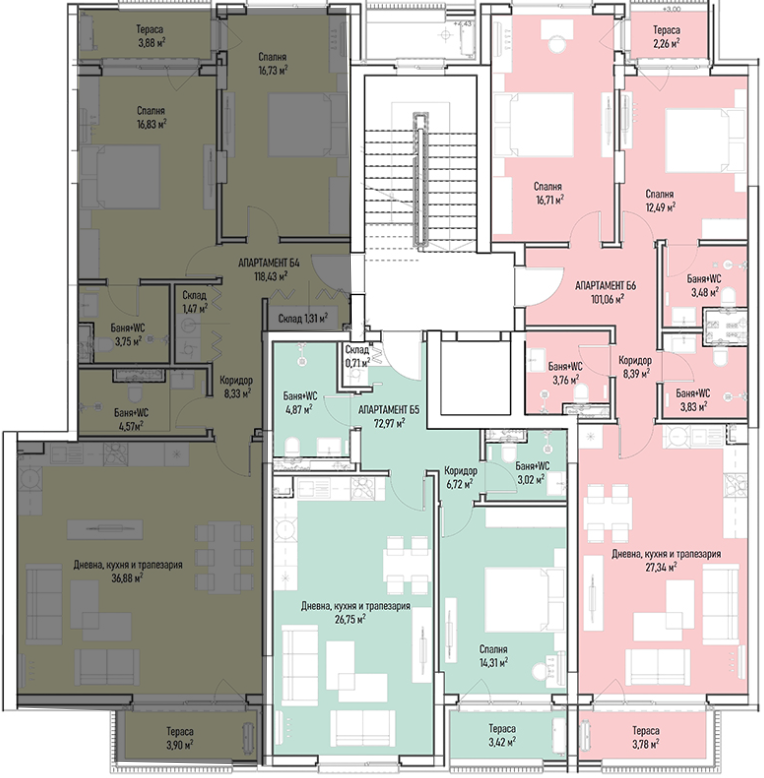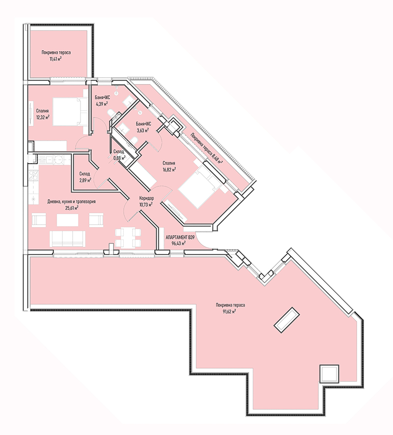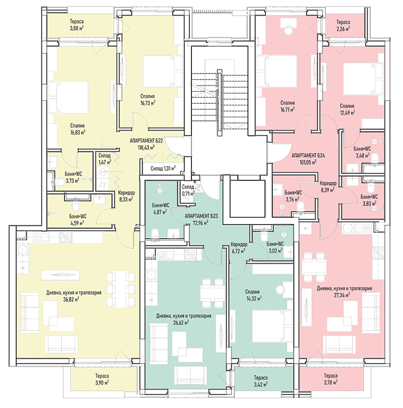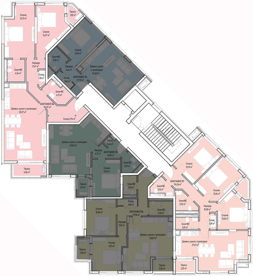 | Apartment В39, 2 BRS APARTMENT, Entrance В, 122.13 m2, (Built-up area 96.43 m2), € 303 809 (€ 2 488/sq.m) | AVAILABLE |