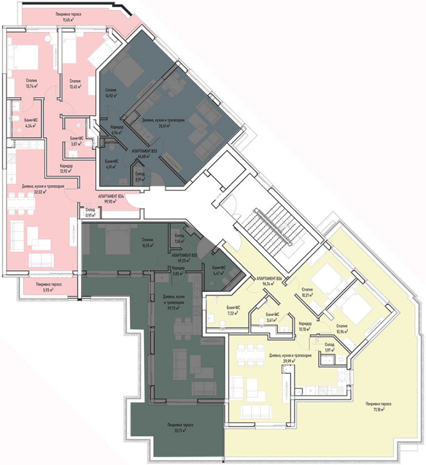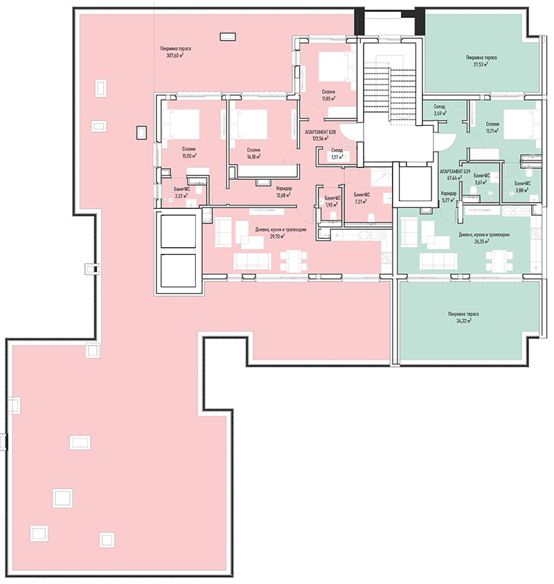 | Apartment В29, 2 BRS APARTMENT, Entrance В, 149.01 m2, (Built-up area 116.39 m2), € 303 490 (€ 2 037/sq.m) | AVAILABLE |