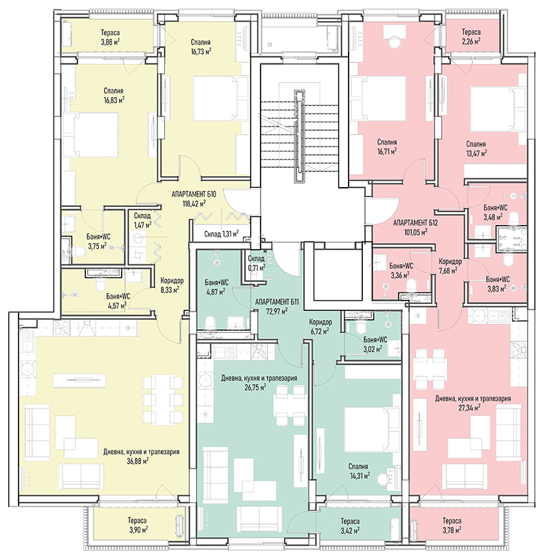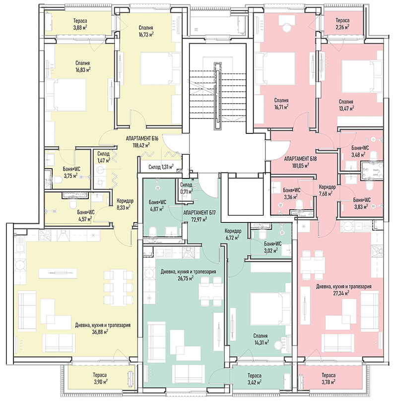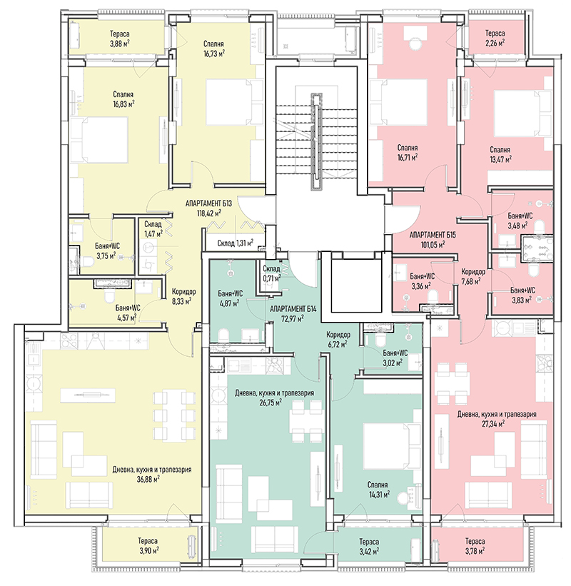 | Apartment Б16, 2 BRS APARTMENT, Entrance Б, 147.21 m2, (Built-up area 118.42 m2), € 296 892 (€ 2 017/sq.m) | AVAILABLE |