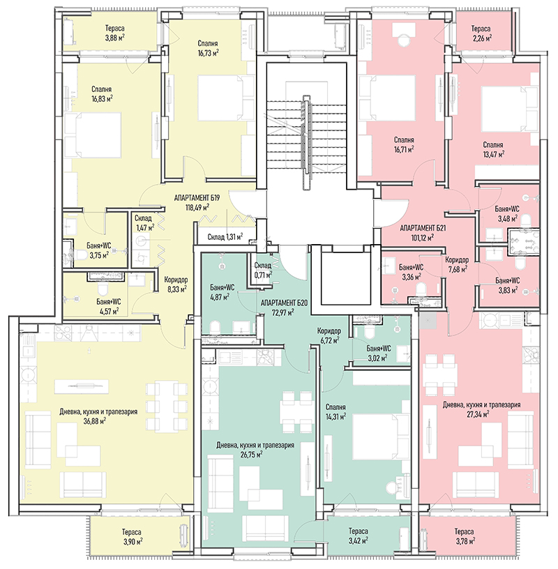 | Apartment В19, 2 BRS APARTMENT, Entrance В, 149.01 m2, (Built-up area 116.39 m2), € 297 530 (€ 1 997/sq.m) | AVAILABLE |
