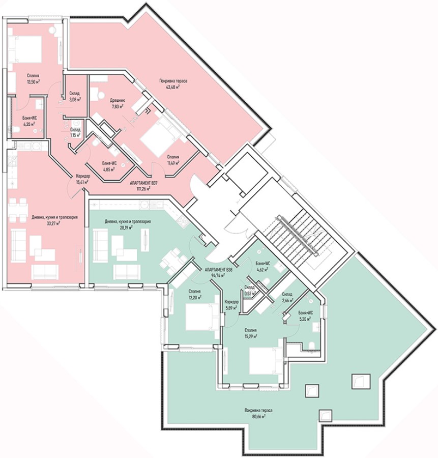 | Apartment В37, 2 BRS APARTMENT, Entrance В, 149.53 m2, (Built-up area 117.26 m2), € 330 772 (€ 2 212/sq.m) | AVAILABLE |