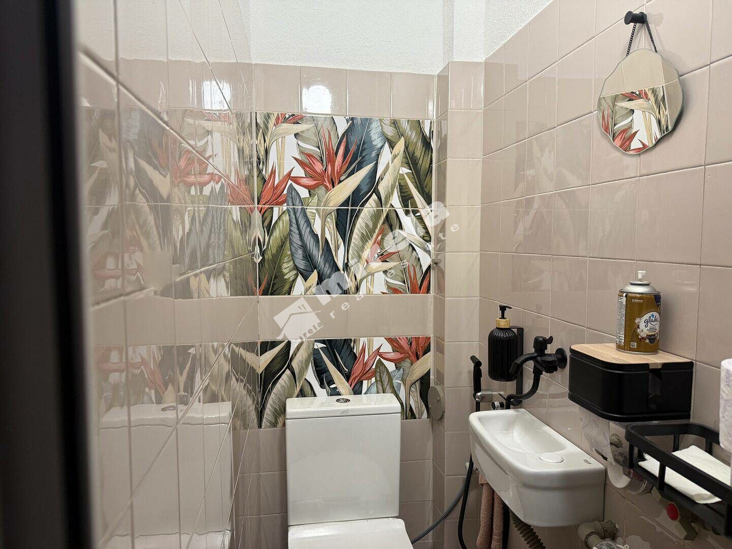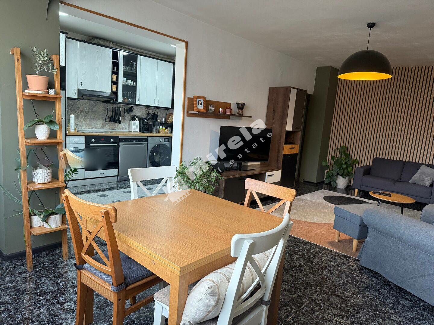 Разпределението включва коридор, дневна с достъп до светла кухня, две спални, баня с тоалетна, самостоятелно тоалетна и един балкон.