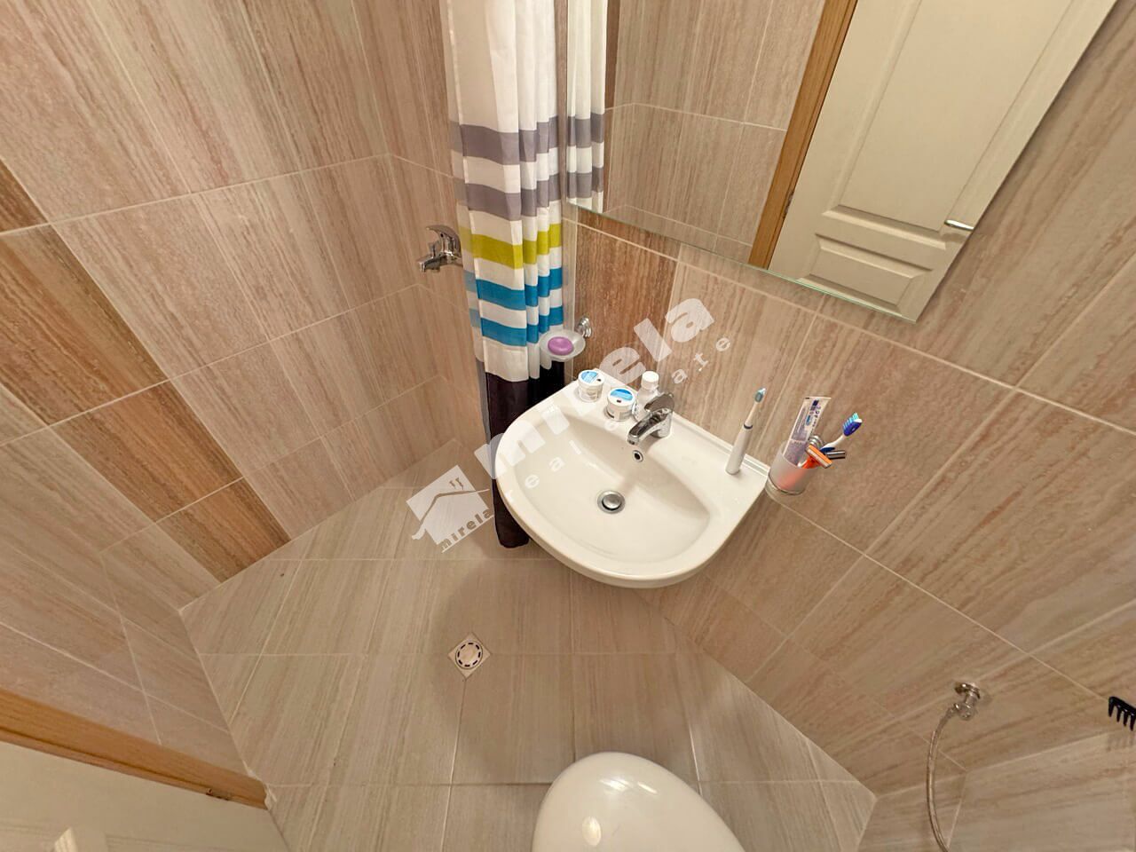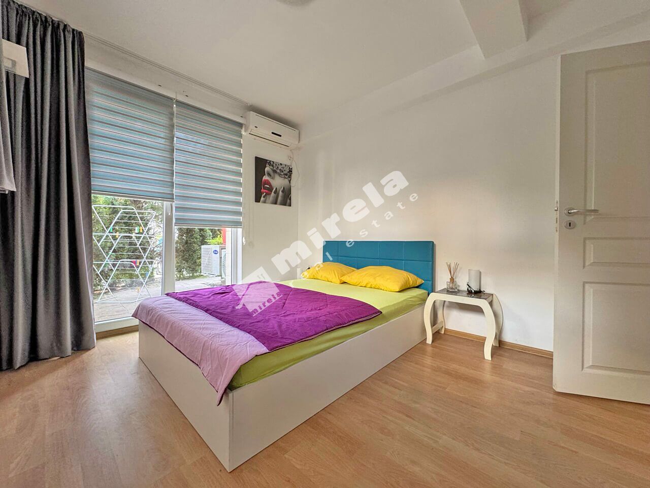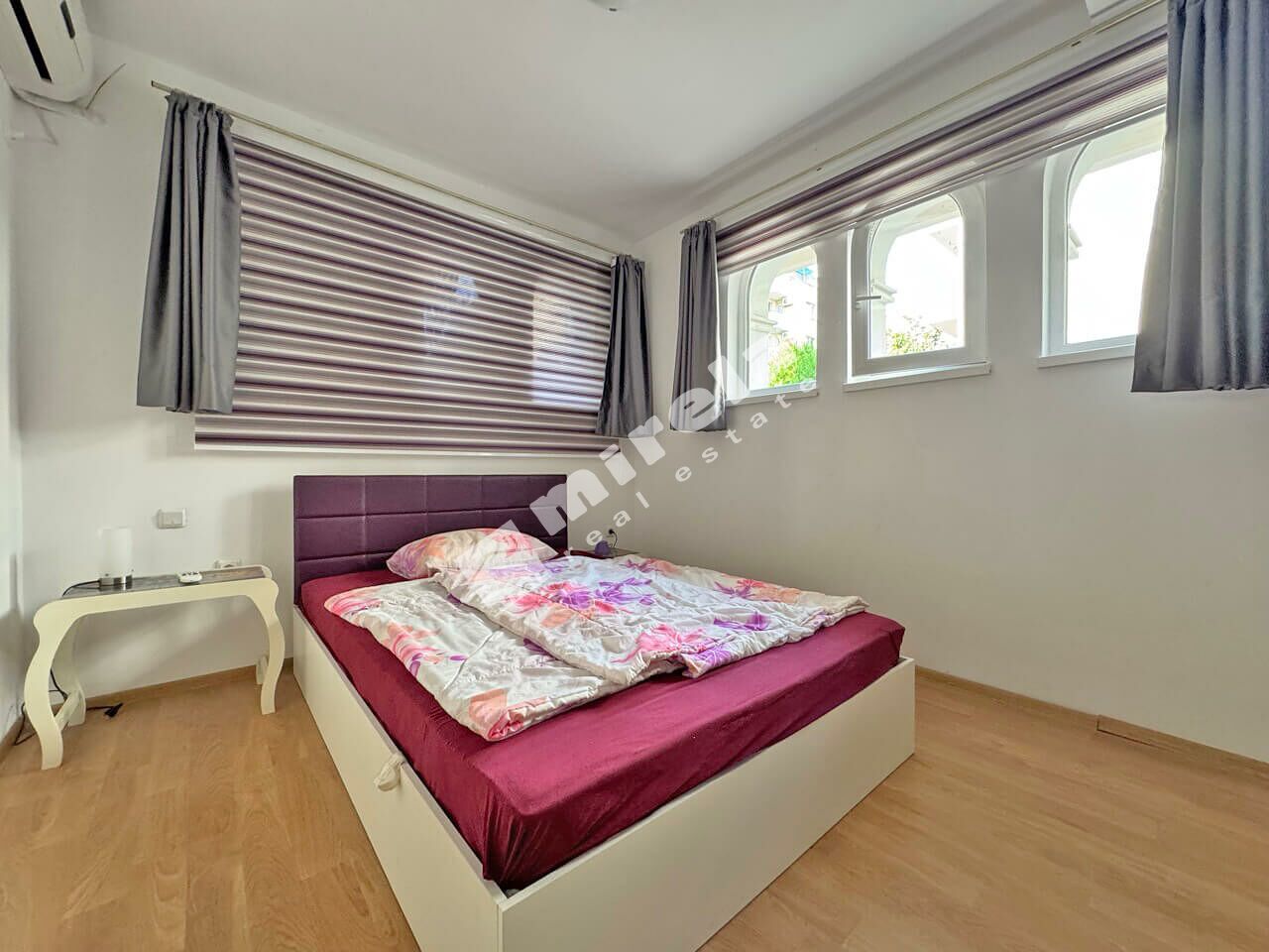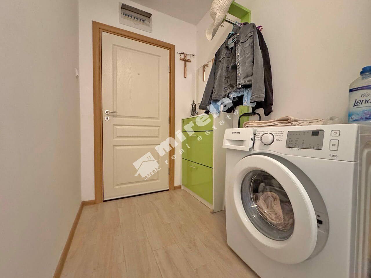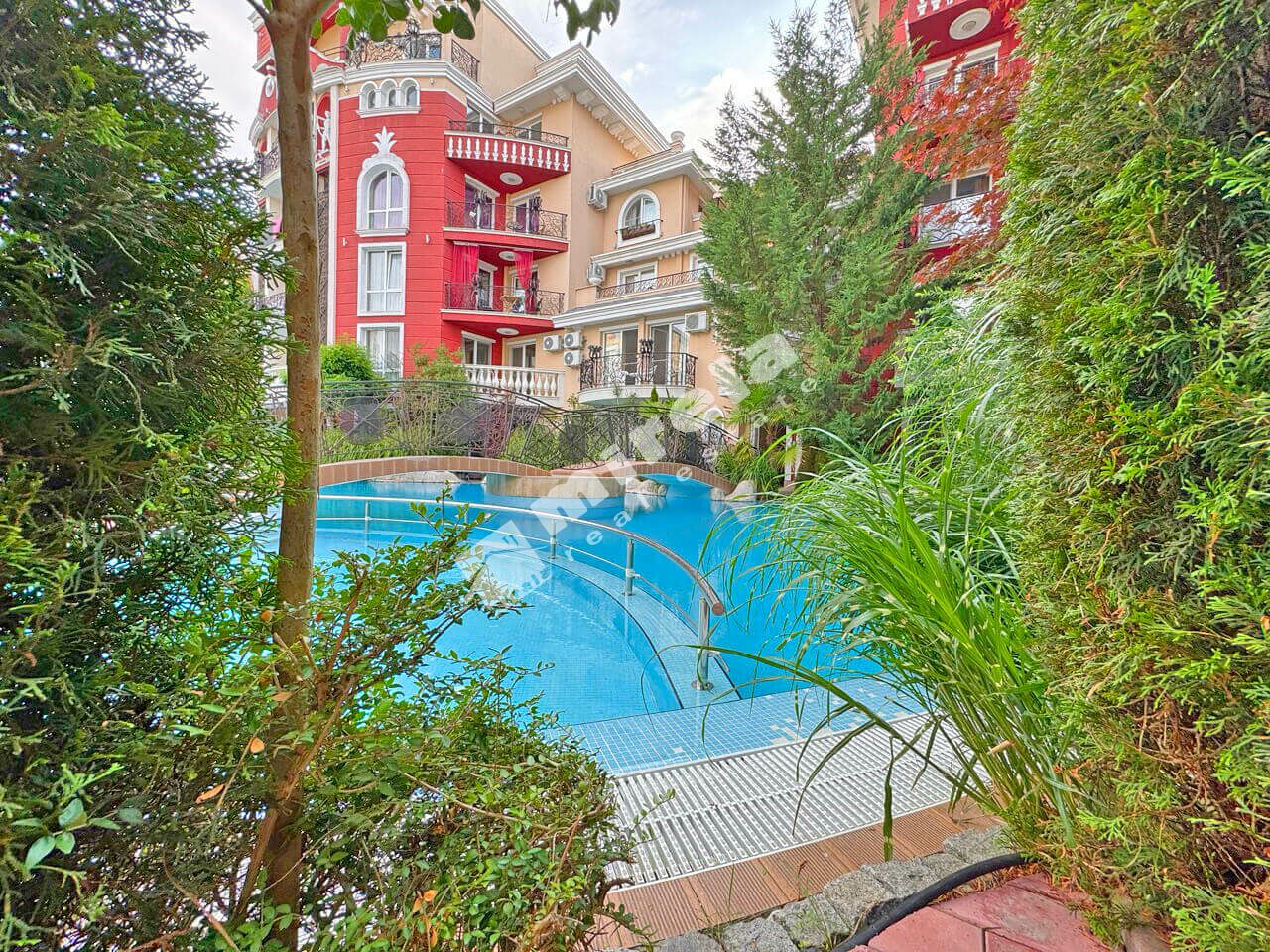 Апартаментът е разположен на партерен етаж с директен достъп до басейна с площ от 78 кв.м., и е с разпределение: коридор, всекидневна с кухненски бокс, две спални, две бани с тоалетни и тераса. Имотът е подходящ, както за лично ползване, така и за отдаване под наем.