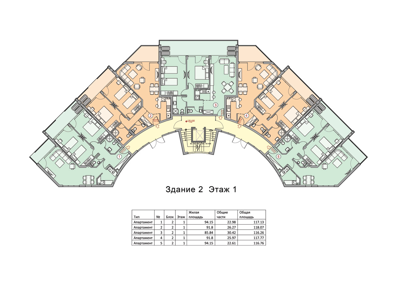 | Квартира 118, 2-Х КОМН. КВАРТИРА, 92.00 m2, (Пл. застройки 78.00 m2), € 120 822 (€ 1 313/кв.м) | В ПРОДАЖЕ |